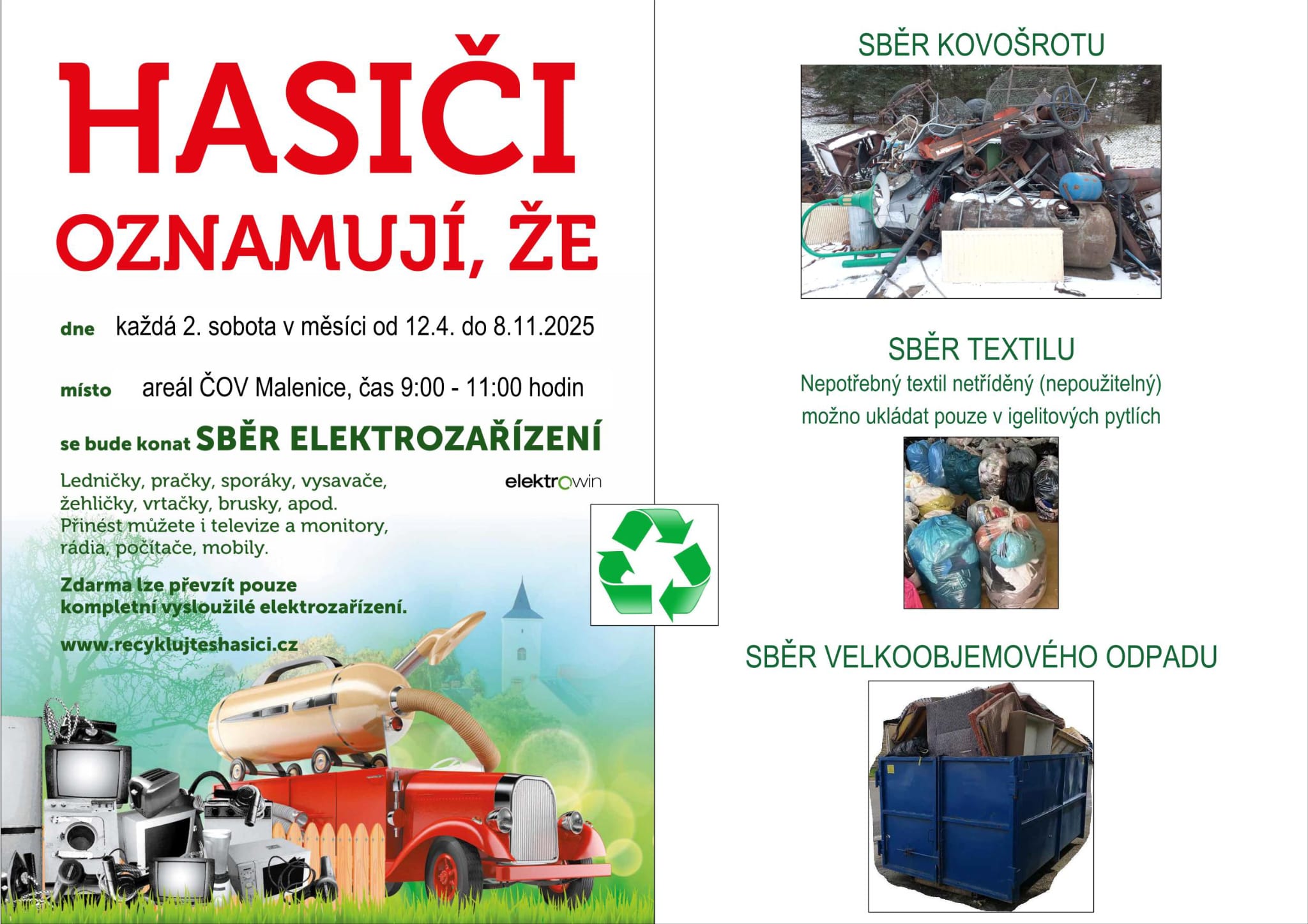 Sběr velkoobjemového odpadu, kovošrotu, textilu, elektrozařízení